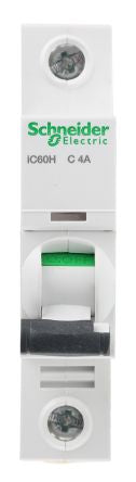 Schneider Electric Acti 9 iC60H MCB Mini Circuit Breaker 1P, 4 A, 10 KA, Curve C [A9F54104]; 791-3281