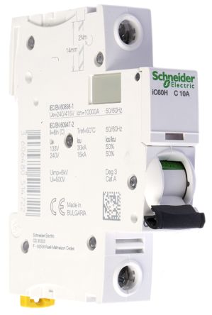 Schneider Electric Acti 9 iC60H MCB Mini Circuit Breaker 1P, 10 A, 10 KA, Curve C [A9F54110]; 791-3293