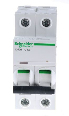 Schneider Electric Acti 9 iC60H MCB Mini Circuit Breaker 2P, 1 A, 10 KA, Curve C [A9F54201]; 791-3322