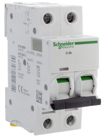 Schneider Electric Acti 9 iC60H MCB Mini Circuit Breaker 2P, 2 A, 10 KA, Curve C [A9F54202]; 791-3326