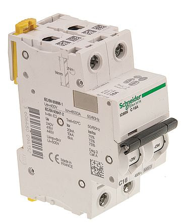Schneider Electric Acti 9 iC60N MCB Mini Circuit Breaker 2P, 20 A, 6 kA, Curve C [A9F77220]; 734-9135