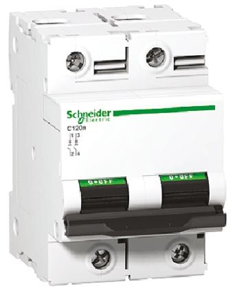 Schneider Electric Acti 9 C120N MCB Mini Circuit Breaker 2P, 100 A, 10 kA, 20 kA, Curve C [A9N18362]; 776-3058