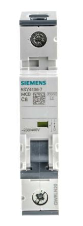 Siemens Sentron 5SY4 MCB Mini Circuit Breaker 1P, 6 A, 10 kA, Curve C [5SY4106-7]; 383-2018