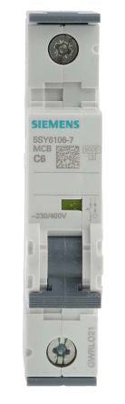 Siemens Sentron 5SY6 MCB Mini Circuit Breaker 1P, 6 A, 6 kA, Curve C [5SY6106-7]; 489-6625