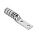 Two-hole, long barrel lug with window, narrow tongue lug, 750 kcmil cable, 3/8 stud hole, 1 hole spacing.