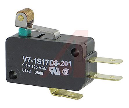SPDT Roller Lever Microswitch, 100 mA [V7-1S17D8-201]; 842-1764