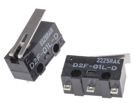 SPDT-NO/NC Hinge Lever Microswitch, 100 mA @ 30 V dc [D2F-01LD]; 682-1490
