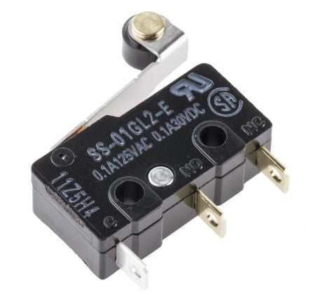 SPDT-NO/NC Roller Lever Microswitch, 100 mA @ 30 V dc [SS-01GL2-E]; 682-2629