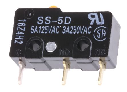 SPDT-NO/NC Pin Plunger Microswitch, 5 A @ 125 V ac [SS-5D]; 686-7685