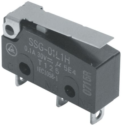 SPDT-NO/NC Hinge Lever Subminiature Micro Switch, 100 mA @ 30 V dc [SSG-01L1H]; 682-2698