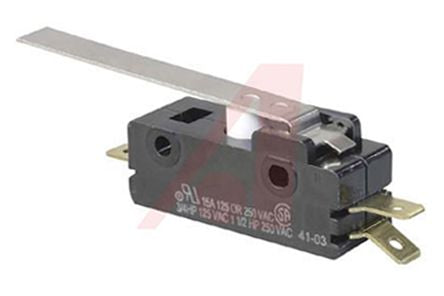 SPDT Straight Lever Microswitch, 15 A @ 125/250 V ac, 2 A @ 48 V dc [0E1300H0]; 868-1755