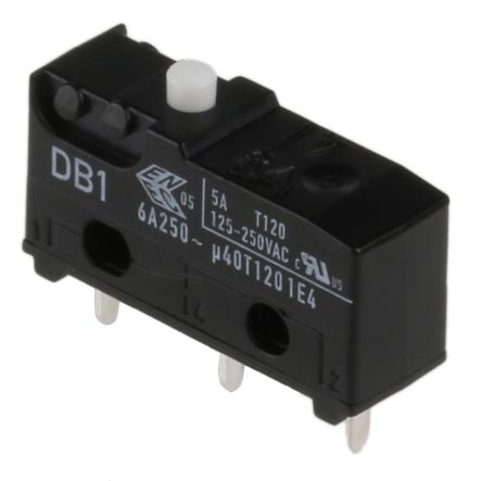 SPDT-NO/NC Button Microswitch, 6 A @ 250 V ac [DB1C-C1AA]; 159-4635