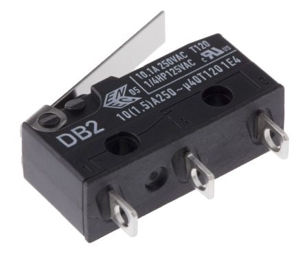 SPDT-NO/NC Short Lever Microswitch, 10.1 A @ 250 V ac [DB2C-A1LB]; 290-0435