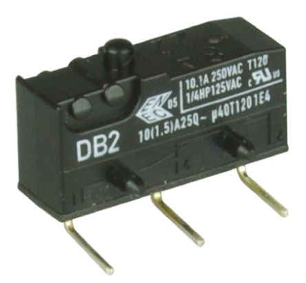 SPDT-NO/NC Button Microswitch, 10.1 A @ 250 V ac [DB2C-D2AA]; 517-836