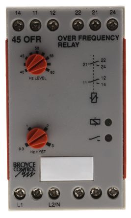 Broyce Control Frequency Monitoring Relay With DPDT Contacts, 1 Phase, 230 V ac [45OFR 230VAC]; 361-1631