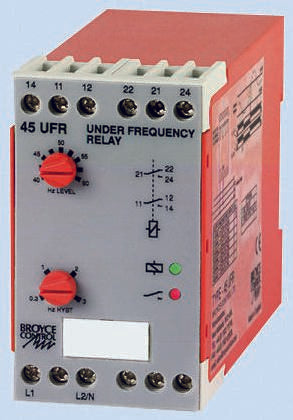 Broyce Control Frequency Monitoring Relay With DPDT Contacts, 1 Phase, 230 V ac [45UFR 230VAC]; 361-1625