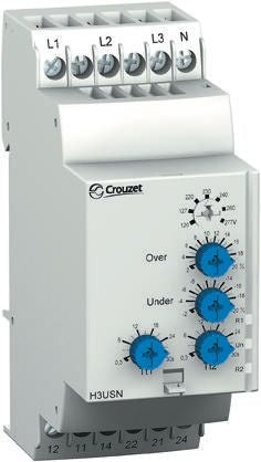Crouzet Voltage Monitoring Relay With 2NO/2NC Contacts, 3 Phase, 120 → 277 V ac [84873221]; 262-205