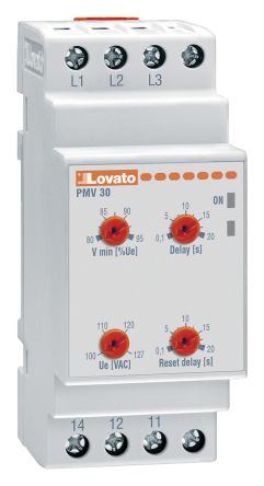 Lovato Voltage Monitoring Relay With SPDT Contacts, 3 Phase, 380 → 575 V ac [PMV30A575]; 916-0091