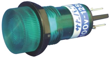Green Neon Indicator Lamp, Solder/Push-On Terminals, 100 → 125 V ac [BN-2-1-G]; 630-0182