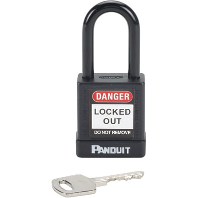 Panduit Non-conductive padlock, 1.58" X 1.77" body, black. [PSL-8BL]; PAO178