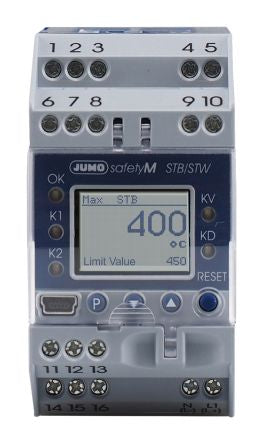 Jumo STB/STW Temperature Limiter, 85 x 45mm 2 Input, 2 Output 2 Change-Over Contacts, Relay [701150/8-01-0253-2001-25/005]; 773-7563