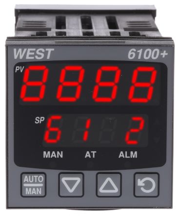 West Instruments P6100 PID Temperature Controller, 48 x 48 (1/16 DIN)mm, 1 Output Relay [P6100-2100-00-0]; 454-2205