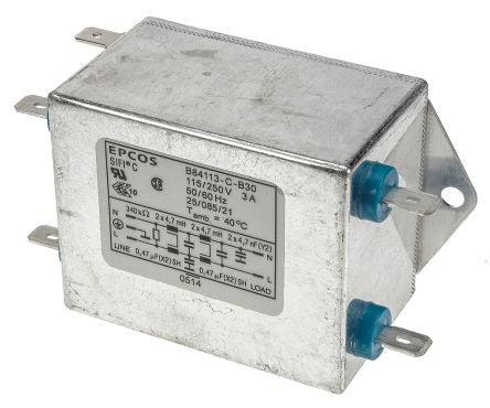 EPCOS B84113C Series 3A 250 V ac 50 → 60Hz Chassis Mount RFI Filter, with Tab Terminals, Single Phase [B84113C0000B030]; 167-8289