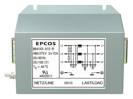 EPCOS B84143A*R000 Series 80A 440 V ac 50 → 60Hz Flange Mount RFI Filter, with Screw Terminals 3 Phase [B84143A0080R000]; 213-8179