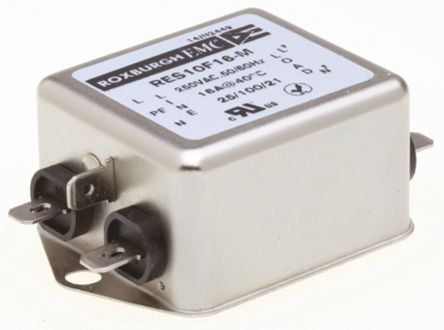 Roxburgh EMC RES10 Series 16A 250 V ac DC → 400Hz Chassis Mount RFI Filter, with Fast-On Terminals [RES10F16-M]; 806-8253