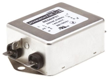 Roxburgh EMC RES80 Series 1A 250 V ac DC → 400Hz Chassis Mount RFI Filter, with Fast-On Terminals, Single Phase [RES80F01]; 806-8219