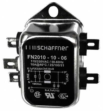Schaffner FN2010 Series 10A 250 V ac 0 → 400Hz Chassis Mount RFI Filter, with Tab Terminals [FN2010-10-06]; 170-4996