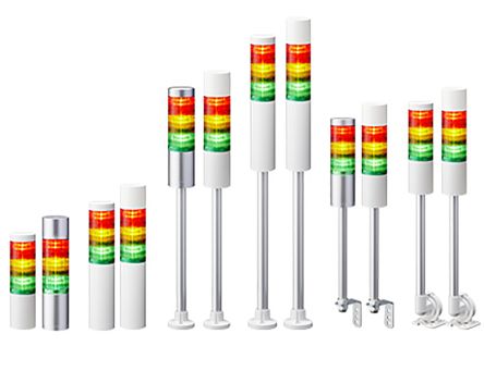 LR6 LED Pre-Configured Beacon Tower With Buzzer, 5 Light Elements, Amber, Blue, Green, Red, White, 24 V dc [LR6-502LJBW-RYGBC]; 169-7511