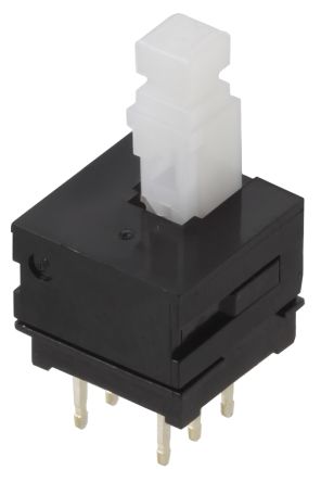 Double Pole Double Throw (DPDT) Momentary Push Button Switch, PCB, 30V dc [SPPH110300]; 123-9037