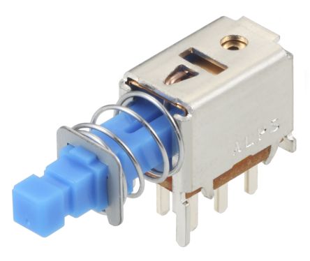 Double Pole Double Throw (DPDT) Latching Push Button Switch, PCB, 30V dc [SPPJ222200]; 123-9055
