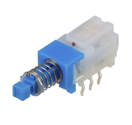 Double Pole Double Throw (DPDT) Latching Push Button Switch, PCB, 30V dc [SPUJ191000]; 123-9063