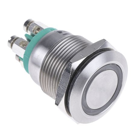 1-pole on-off switch Momentary Push Button Switch, IP66, 19.2mm, Panel Mount [MPI002/TE/GN/12]; 729-5393