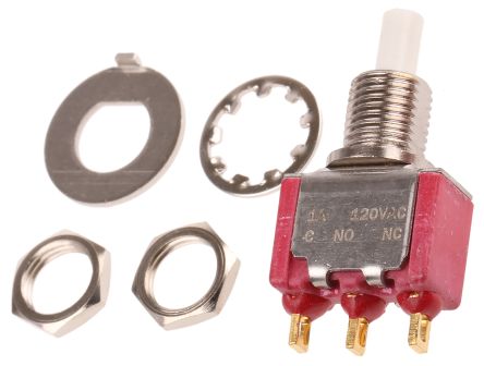 Single Pole Double Throw (SPDT) Momentary Push Button Switch, Panel Mount [8121SHZGE]; 516-160