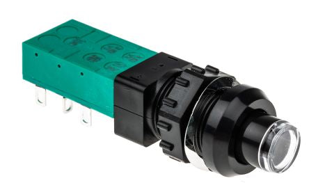Double Pole Double Throw (DPDT) Latching Push Button Switch, 14mm, Panel Mount [ZNE18 FA200 BK OG 2U EE L]; 339-443