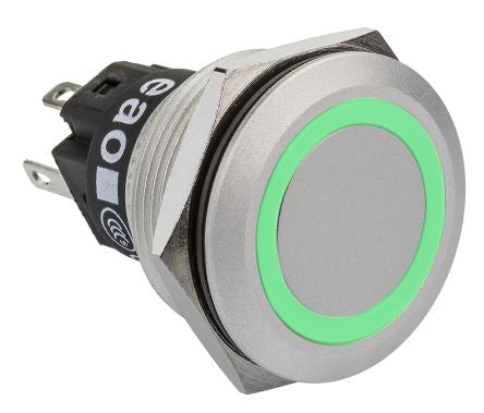 EAO 1C Momentary Green LED Push Button Switch, IP65, IP67, 22.3 (Dia.)mm, Flush Mount, Blank, 24V [82-6152.1134]; 200-4221