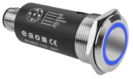EAO Blue Push Button Head - Maintained, Series 82 Series, 22mm Cutout, Round [82-6657.2124]; 220-6816