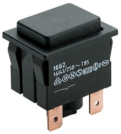 1-pole on-off switch Latching Push Button Switch, IP40, 30.4 x 22.2mm, Panel Mount, 250V ac [1662.0201]; 907-0332