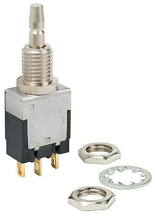 Single Pole Double Throw (SPDT) Momentary Push Button Switch, 6.35 (Dia.)mm, Bushing, 28V ac/dc [EB2011G]; 125-1697