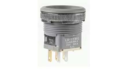 NKK Switches LB SPDT On-(On) Push Button Switch, IP65, 15.8 x 15.8mm, Panel Mount, 28V [LB15WGG01]; 196-0310