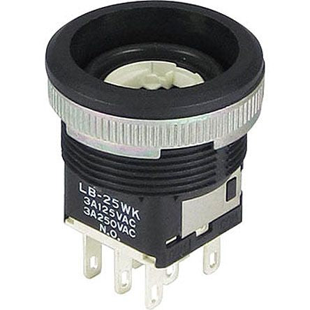 Double Pole Double Throw (DPDT) Momentary Push Button Switch, IP65, 22 (Dia.)mm, Snap-In, 30 V dc, 125 V ac, 250 V ac [LB25CKW01]; 125-1667