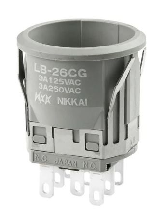 NKK Switches LB DPDT On-On Push Button Switch, IP65, 15.8 x 15.8mm, Panel Mount, 125 V, 250 V [LB26CGW01]; 196-0304