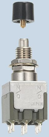 Double Pole Double Throw (DPDT) Momentary Push Button Switch, Panel Mount [MB-2061]; 354-3566