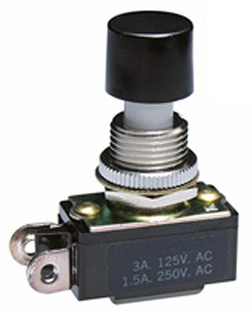 1-pole on-off switch Momentary Push Button Switch, 12.5 (Dia.)mm, Bushing, 125 V ac, 250 V ac [SB221NO]; 125-1715