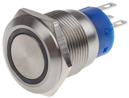 Single Pole Double Throw (SPDT) Latching Push Button Switch, IP67, 19.2 (Dia.)mm, Panel Mount, 250V ac; 111-3881