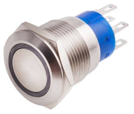 Double Pole Double Throw (DPDT) Momentary Push Button Switch, IP67, 19.2 (Dia.)mm, Panel Mount, 250V ac; 111-3892