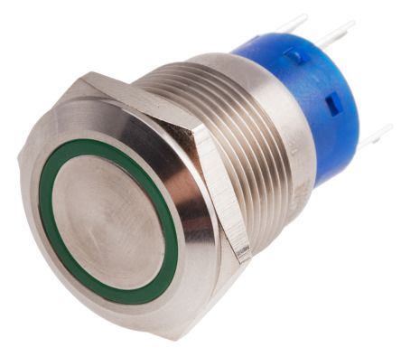 Single Pole Double Throw (SPDT) Latching Push Button Switch, IP67, 19.2 (Dia.)mm, Panel Mount, 250V ac; 111-5784